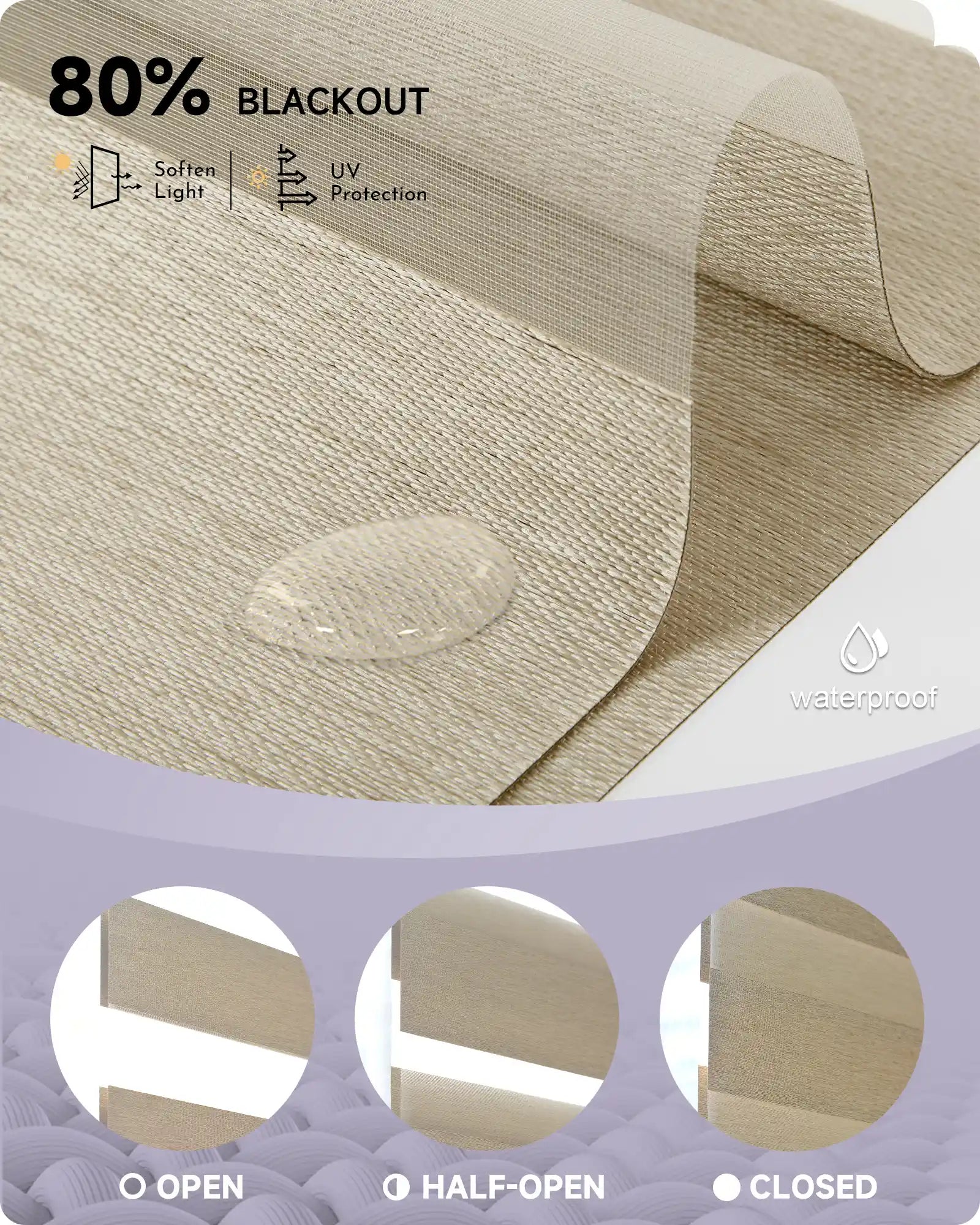 【Functional Shades】: Freely choose your blackout fabrics: 50%-90% blackout. Alternating sheer and 4.5" slats combination. Adjust light by slats dislocation, flexibly switch between privacy and light filtering.