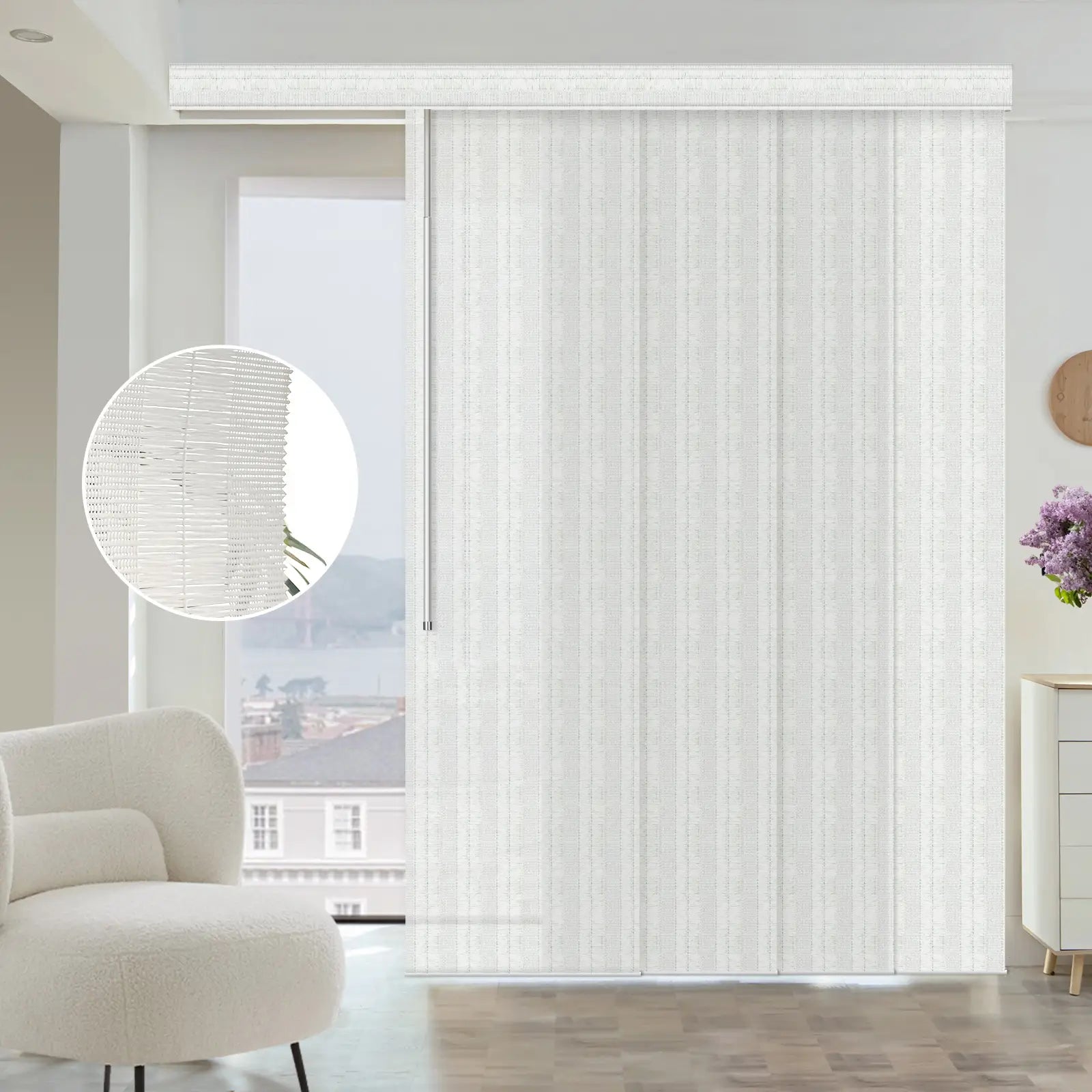 【MANUAL PANEL TRACK BLINDS】: Paper & polyester weaved natural fabric, filter light and reduce heat, also keep privacyRemovable & replaceable panels, easy to clean. Valance with the same fabric is optional. Ideal for sliding glass door or large windows.