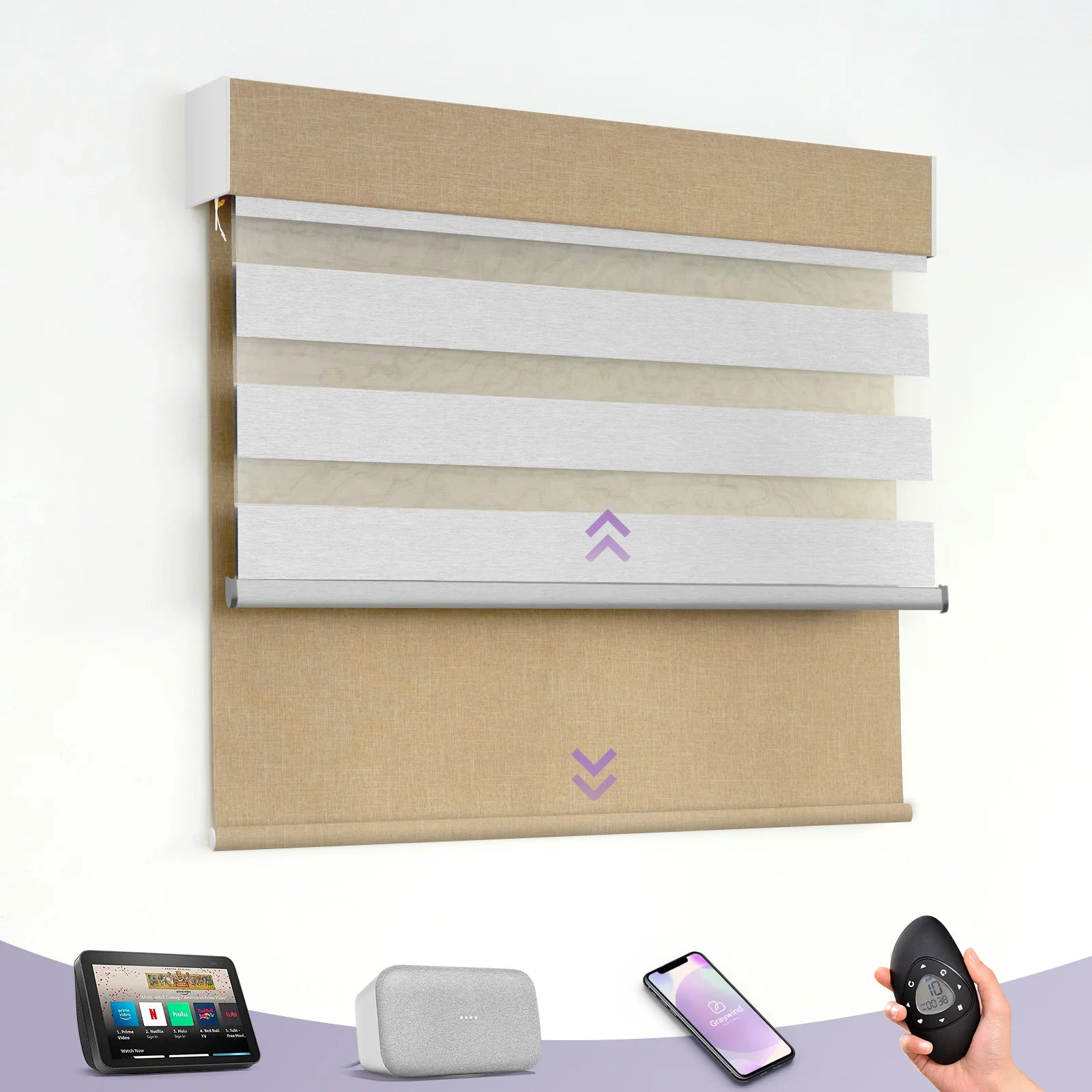 The dual shade design offers unparalleled versatility, allowing natural light to filter through the adjustable zebra stripes while providing the option for complete privacy and darkness when the blackout roller is deployed.
