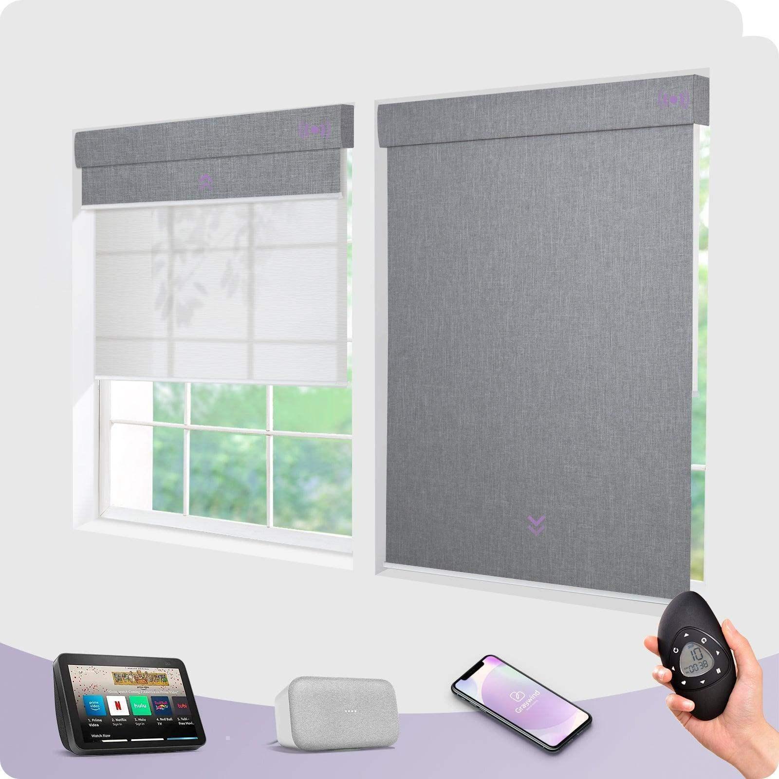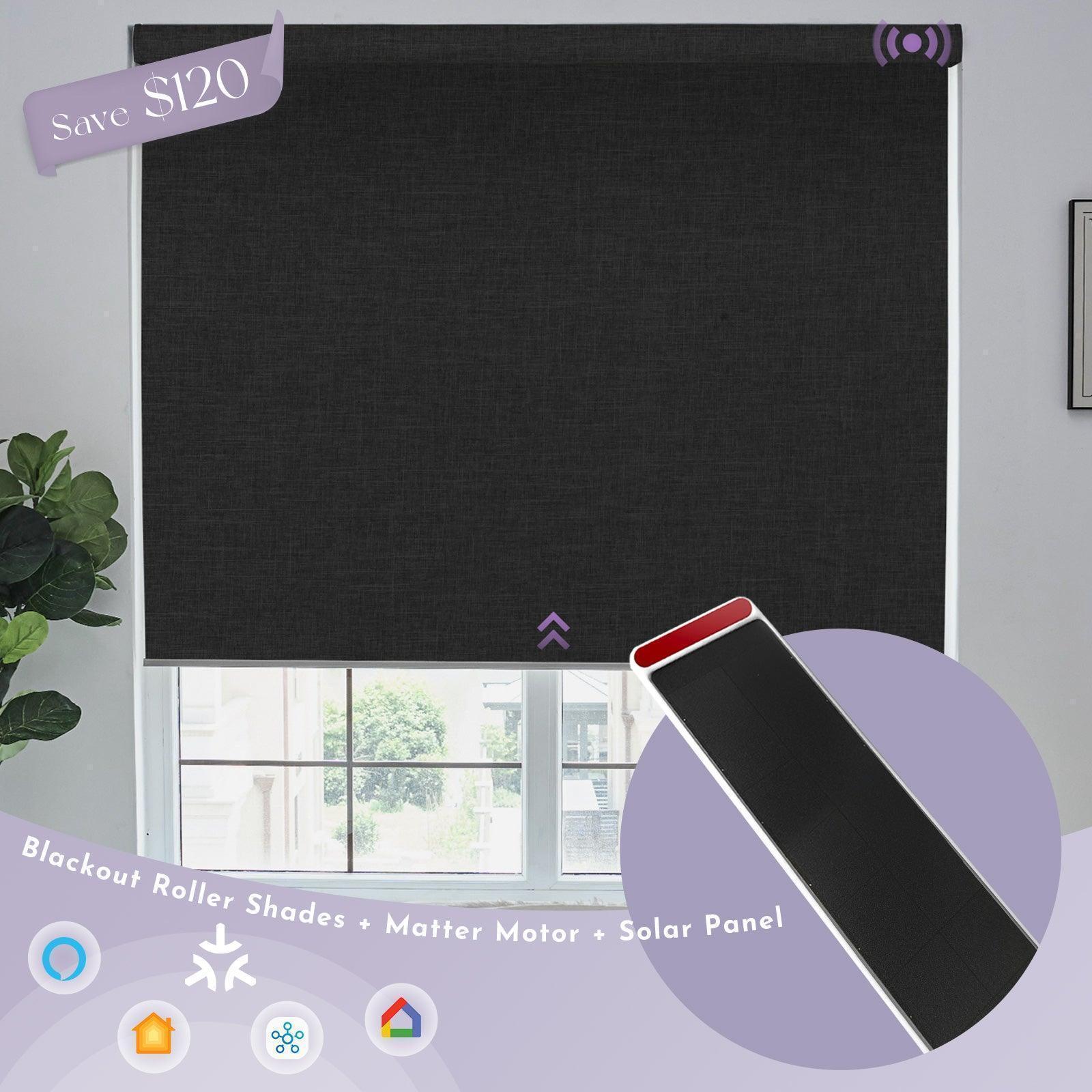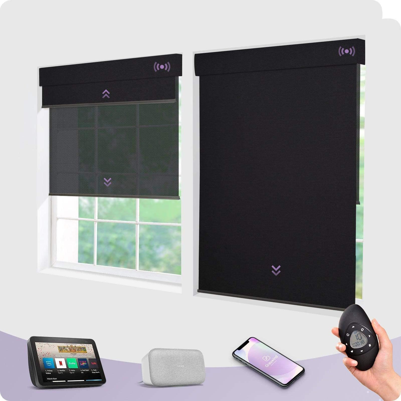 Graywind Motorized Blackout Roller Shades & Matter Motor & Solar Panel | Customizable