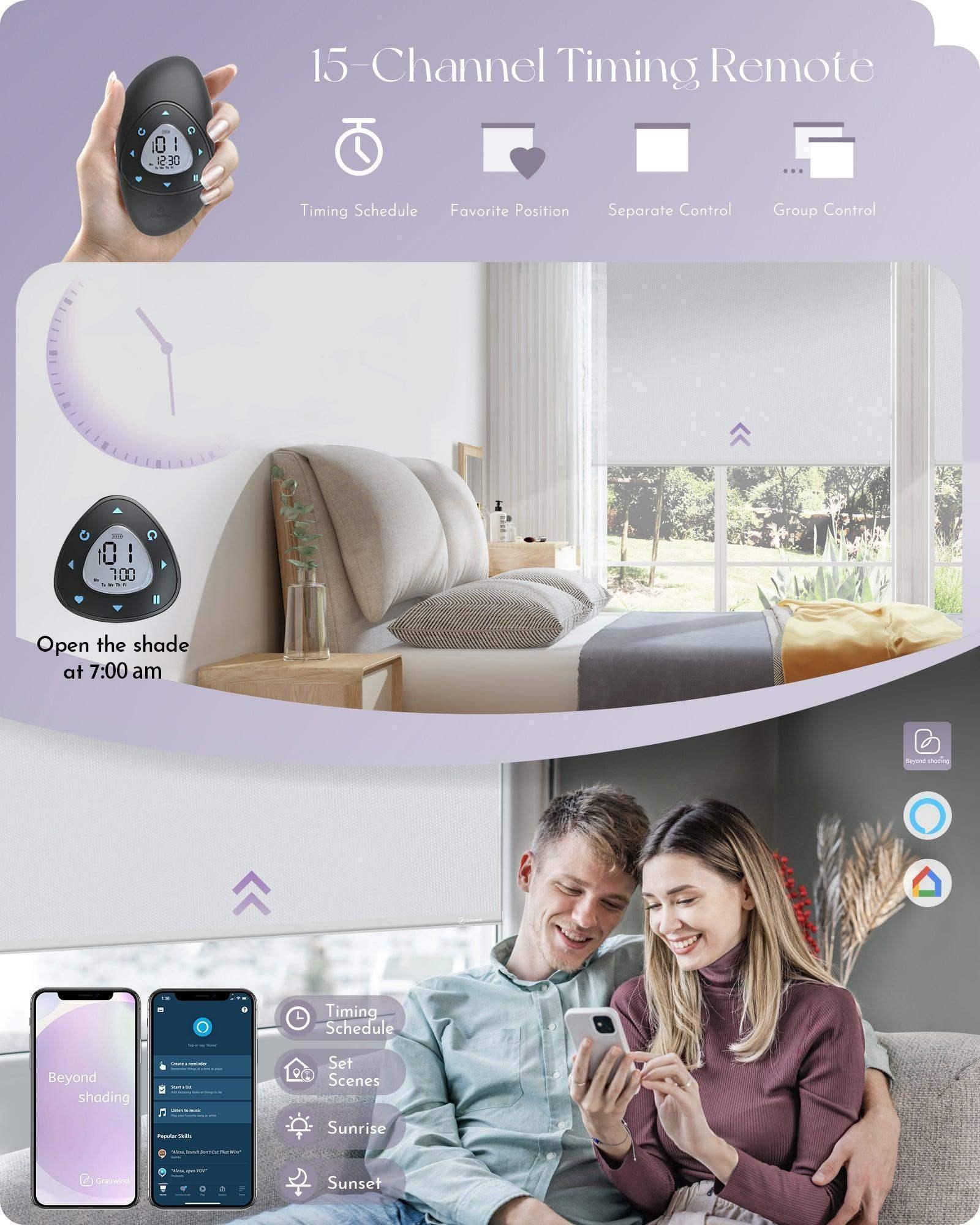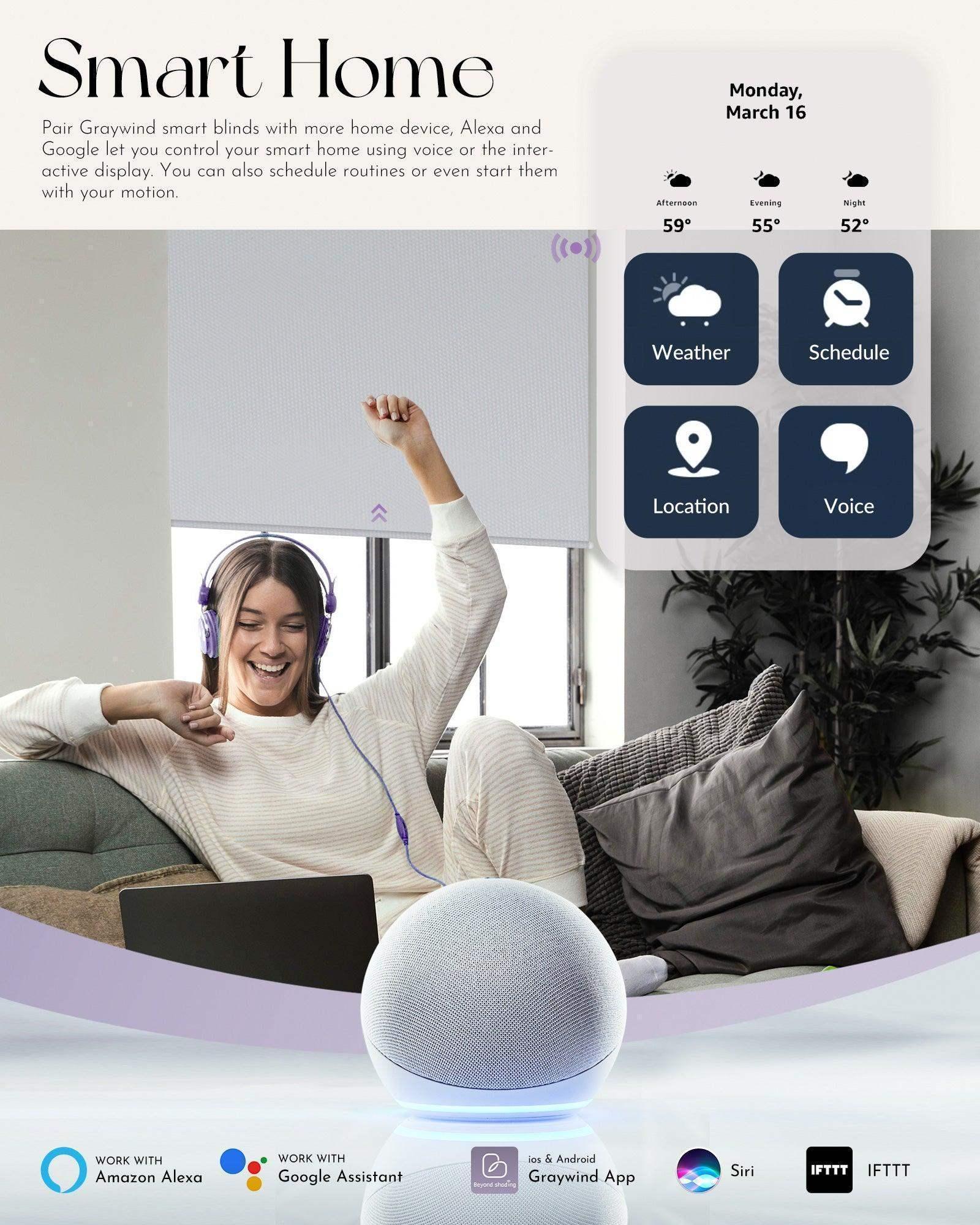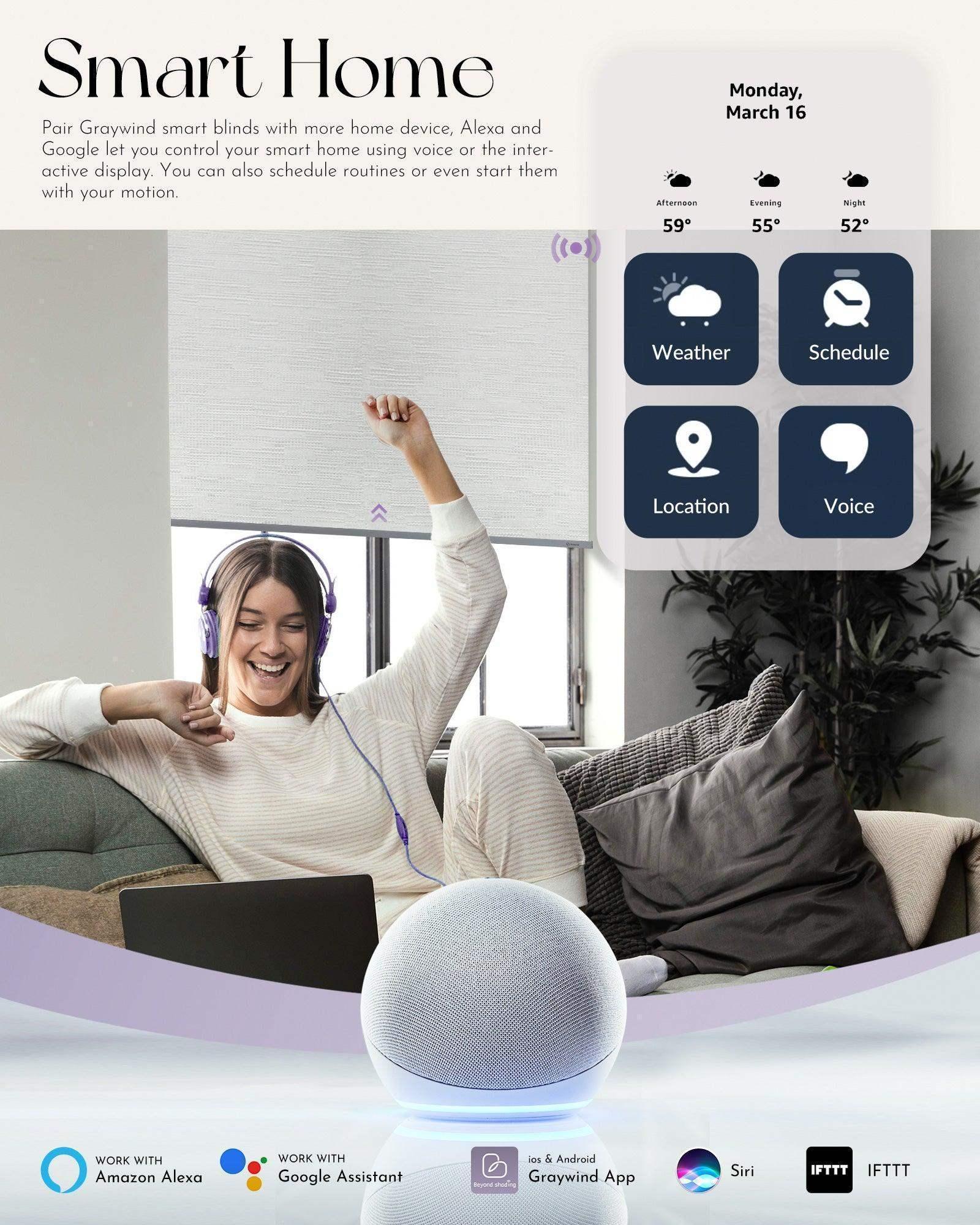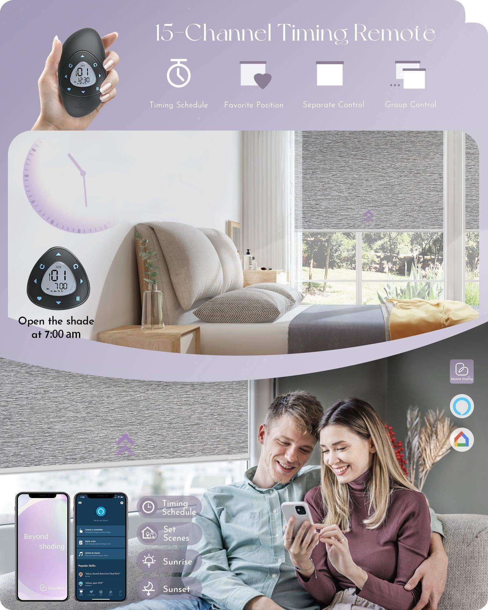 Graywind Motorized Blackout Roller Shades & Matter Motor & Solar Panel | Customizable
