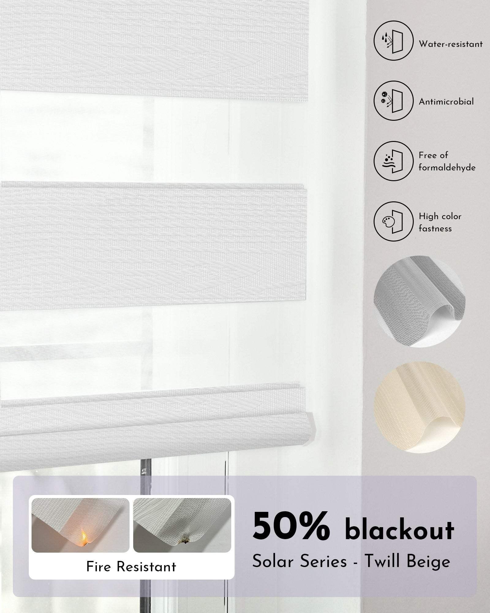 High-quality blackout fabrics, offer absolute privacy & energy saving. Ideal indoor window treatments for bedroom, living room, patio sliding door and media room etc.